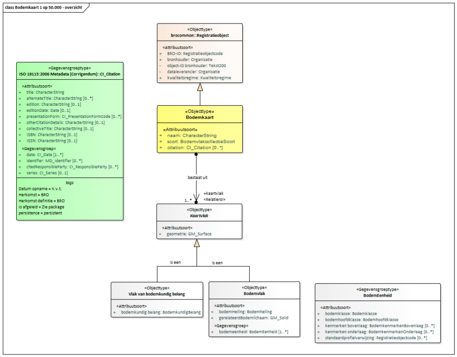 Bodemkaart is specialisatie van Registratieobject | Een entiteit met het geheel van generieke gegevens die voorkomen bij alle verschillende soorten registratie-objecten in de basisregistratie ondergrond (BRO). |