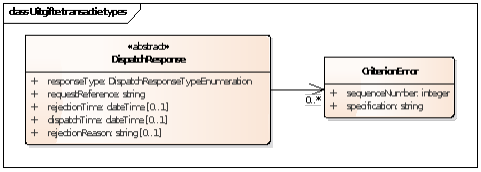 Het uitgiftehandboek benoemt als mogelijke reactie op een uitgifteverzoek een bericht van afwijzing. De webservice gebruikt hiervoor een response van het datatype DispatchCharacteristicsResponse.
