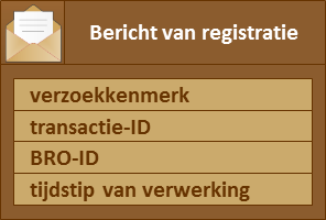 Het belangrijkste gegeven in het bericht van registratie is het BRO-ID, de identificatie van het object in de BRO die voortaan in het formele berichtenverkeer moet worden gebruikt. De dataleverancier krijgt ook terug op welk moment het object is geregistreerd.