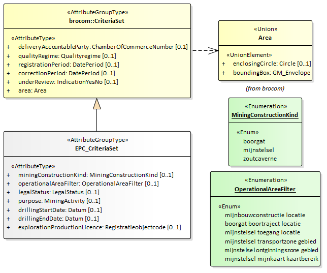 De definities van de attributen, die EPC_CriteriaSet uit dsepc-messages.xsd toevoegt aan CriteriaSet uit brocommon, staan in onderstaande tabel: