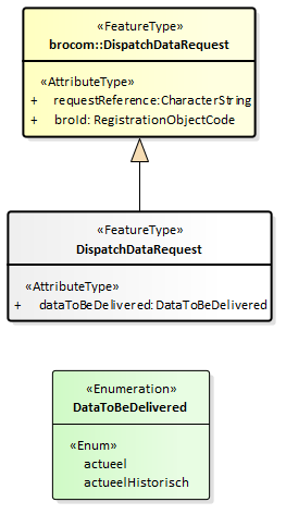 | dataToBeDelivered | te leveren gegevens | DataToBeDelivered | 1 | Aanduiding welke gegevens over het registratieobject worden opgevraagd: alleen de actuele gegevens of de volledige materiële geschiedenis. |