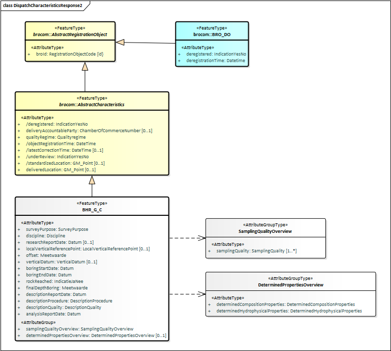 Het datatype BHR_G_CriteriaSet, (Kenmerkenverzameling) is een specialisatie van CritriaSet (Kenmerkenverzameling) uit brocommon.xsd, waaraan het een lijst met BHR-G specifieke attributen toevoegt. Alle attributen binnen BHR_G_CriteriaSet zijn optioneel. De meeste attributen hebben een scalair datatype, met uitzondering van de Attributegrouptypes DatePeriod (Datum interval) zoals gedefinieerd in brocommon.xsd en VerticalPositionRange (Diepte interval) zoals gedefinieerd in dsbhrg-messages.xsd.
