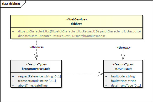 Met een DispatchCharacteristicsRequest (v erzoek tot uitgifte van kengegevens ) kunnen de kengegevens van één of meer registratieobjecten worden opgevraagd, voor zover deze voldoen aan de kenmerken in het uitgifteverzoek. Het uitgifteverzoek is gedefinieerd in het XSD-bestand dsbhrgt-messages.xsd. Het is een specialisatie van AbstractDispatchCharacteristicsRequest zoals gedefinieerd in brocommon.xsd. Het voegt de AttributeGroup (gegevensgroep) criteria (kenmerkenverzameling) toe aan het AttributeType (attribuutsoort) requestReference (verzoekkenmerk) uit brocommon.