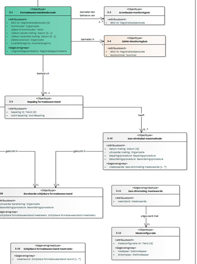 3 | Verplaatsen attributen van Bepaling Formatieweerstand | Bepaling formatieweerstand | Er is een nadrukkelijke gebruikerswens om de meet- en instrumentconfiguraties te kunnen hergebruiken door de jaren heen. Dat betekent dat ze niet bij iedere meting opnieuw aangeleverd gaan worden. Het domeinmodel suggereert dat dit wel het geval is. Door de associatie-relatie tussen configuratie en meetmethode te verleggen naar de entiteit Formatieweerstandonderzoek wordt dit opgelost. |