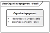 Het niet registreren van de organisatienaam waarborgt de consistentie van de data en de architectuur. Het blijkt dat er een workaround mogelijk is waarbij een lege string aangeleverd wordt. Entiteit en attribuut zijn hiernaast afgebeeld (uitsnede van het GLD domeinmodel).