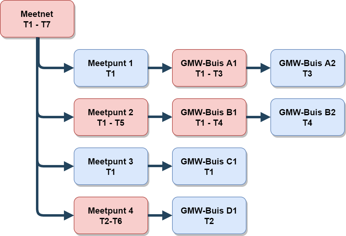 - het mag niet voorbij T3 of T4 liggen, want dan zou een meetpunt een andere buisverwijzing krijgen voordat het meetpunt is opgevoerd;