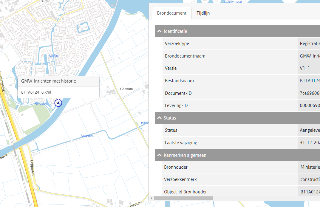 Het is ook mogelijk om de gegevens van een levering te bekijken via de lijstweergave. Daar zie je, na het openklikken van een brondocument, dezelfde informatie als op de kaart: