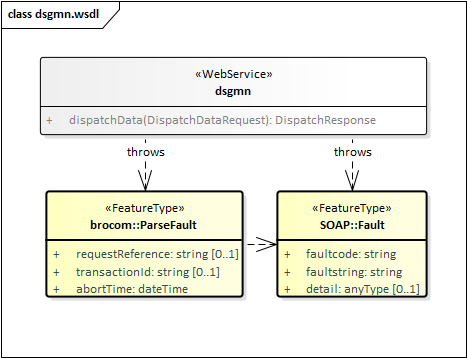 ParseFault (Validatiefout): als de GMN uitgiftewebservice constateert dat een DispatchDataRequest niet een welgevormd XML-bericht is of dat het niet voldoet aan de schema validatie, dan leidt dit tot een ParseFault.
