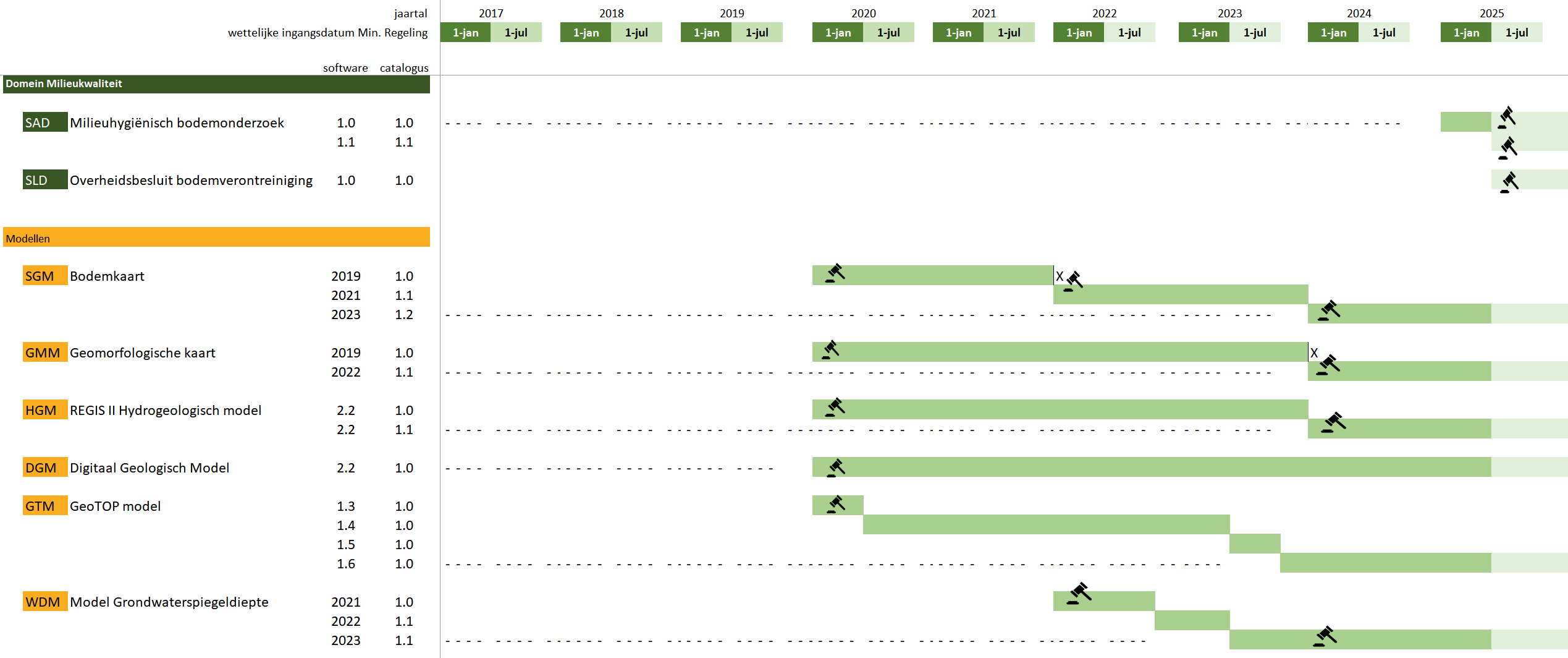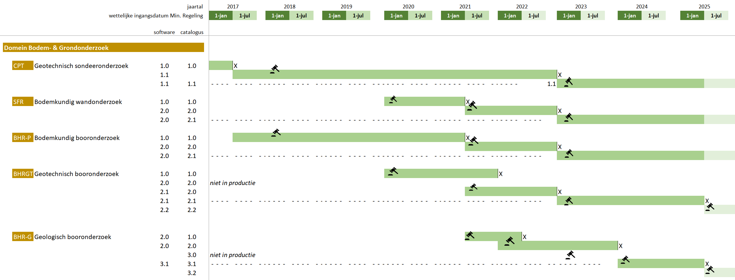 Alle versies van de registratieobjecten binnen de BRO hebben een looptijd, de life cycle. Bestaande versies van de software worden onderhouden en bugs worden opgelost. Daarnaast zullen er grote aanpassingen nodig zijn, denk aan een omvangrijke wijziging van de gegevensstandaard of toevoeging van substantiƫle functionaliteit. Een dergelijke aanpassing zorgt voor een nieuwe versie, welke ook impact kan hebben op gebruikers van de BRO en hun systemen. Deze pagina is bijgewerkt op 12 juli 2024.