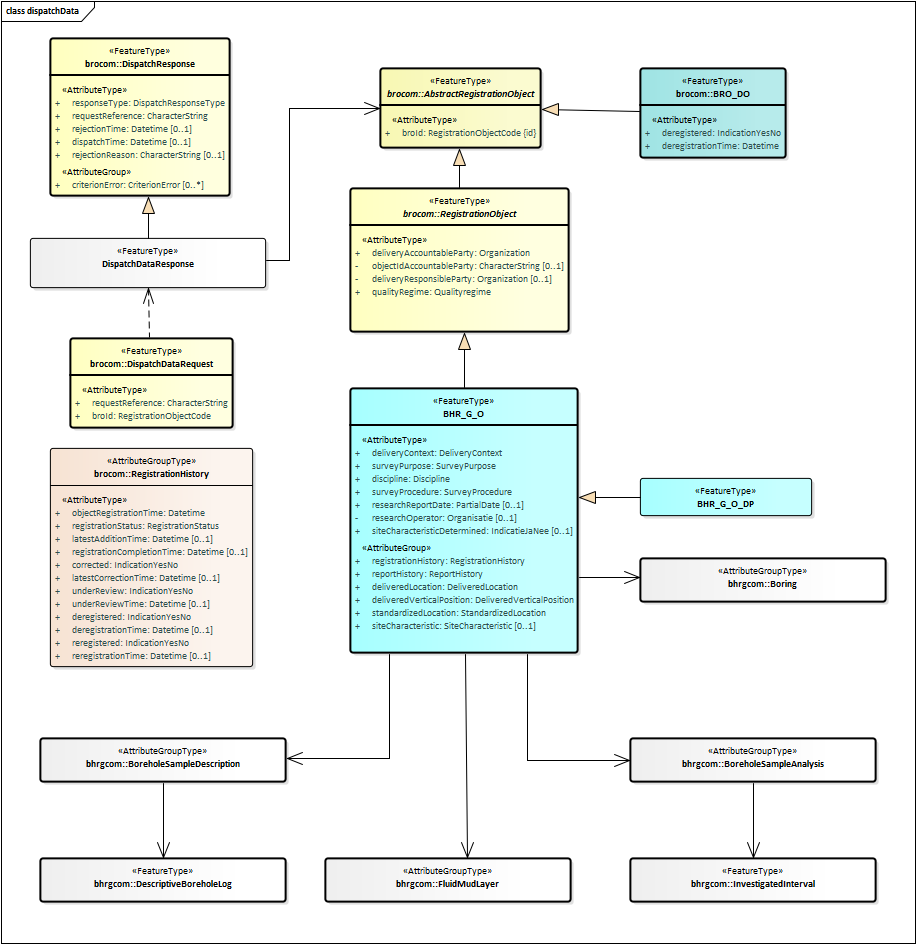 Met een DispatchDataRequest (verzoek tot uitgifte van objectgegevens) kunnen op basis van de broId (BRO-ID) alle geregistreerde gegevens van één registratieobject worden opgevraagd. Het uitgifteverzoek is volledig gedefinieerd in het XSD-bestand brocommon.xsd.