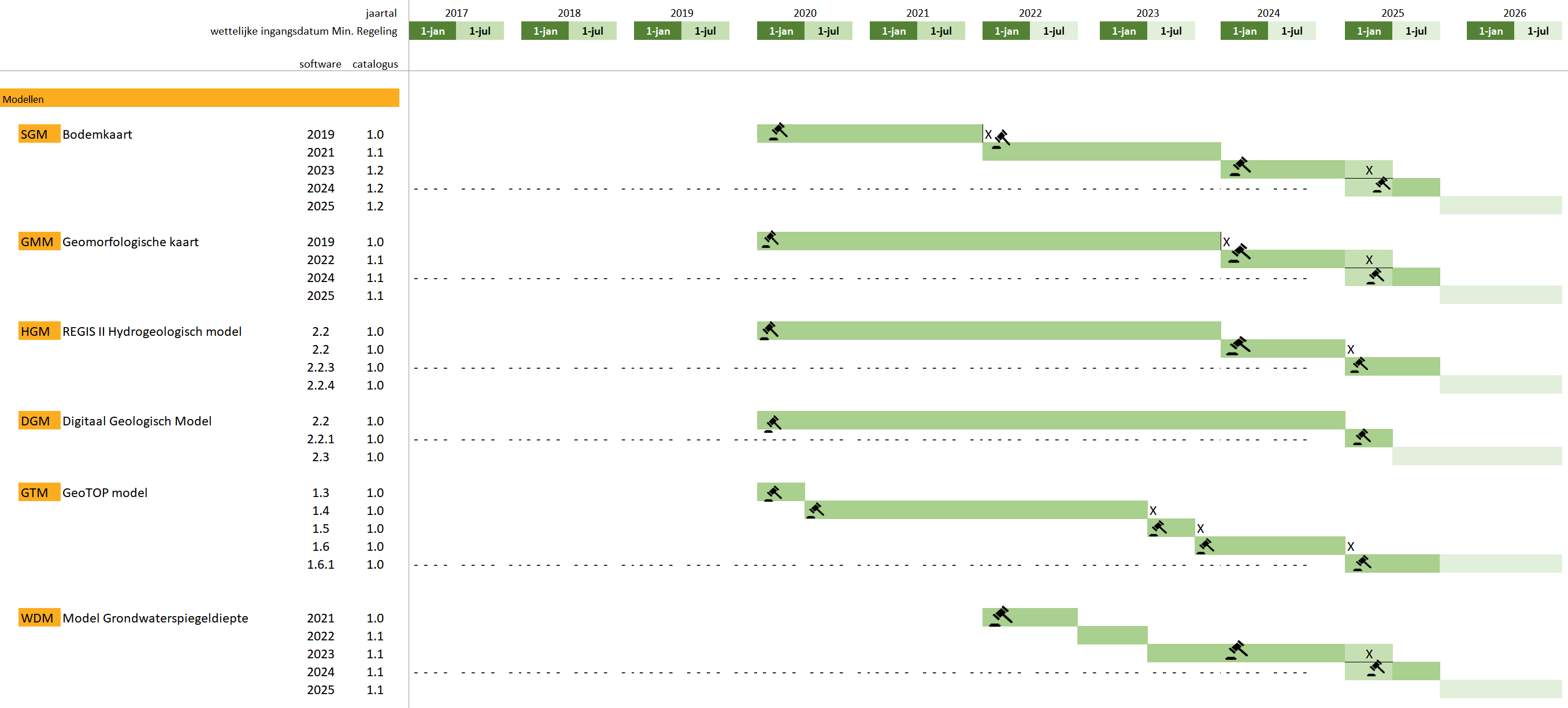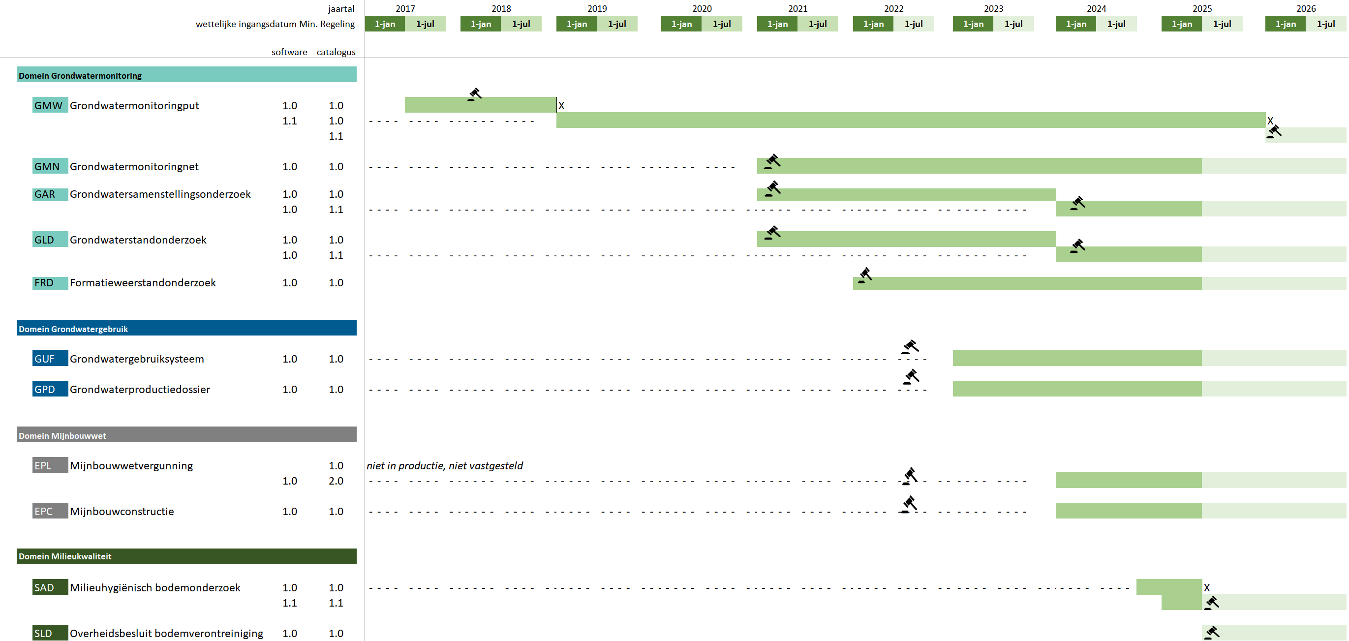 Alle versies van de registratieobjecten binnen de BRO hebben een looptijd, de life cycle. Bestaande versies van de software worden onderhouden en bugs worden opgelost. Daarnaast zullen er grote aanpassingen nodig zijn, denk aan een omvangrijke wijziging van de gegevensstandaard of toevoeging van substantiƫle functionaliteit. Een dergelijke aanpassing zorgt voor een nieuwe versie, welke ook impact kan hebben op gebruikers van de BRO en hun systemen. Deze pagina is bijgewerkt op 19 december 2024.