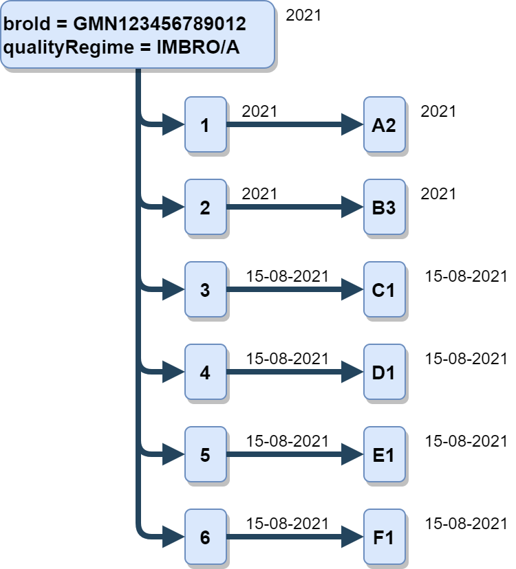 We veronderstellen een uitgangssituatie die is ontstaan doordat de dataleverancier de volgende twee registrationRequests (registratieverzoeken) heeft aangeboden: