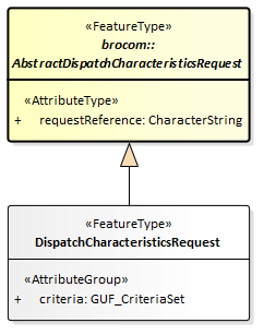 Het BRO-bericht DispatchCharacteristicsRequest bevat het uitgifteverzoek tot het leveren van de in het BRO-register opgenomen kengegevens van de GUF registratieobjecten die voldoen aan bepaalde kenmerken. Het DispatchCharacteristicsRequest (Verzoek tot uitgifte van kengegevens) van de GUF uitgiftewebservice is een specialisatie van AbstractDispatchCharacteristicsRequest in de package brocommon, waaraan het het attribuut criteria (kenmerken) toevoegt met de GUF specifieke kenmerken.