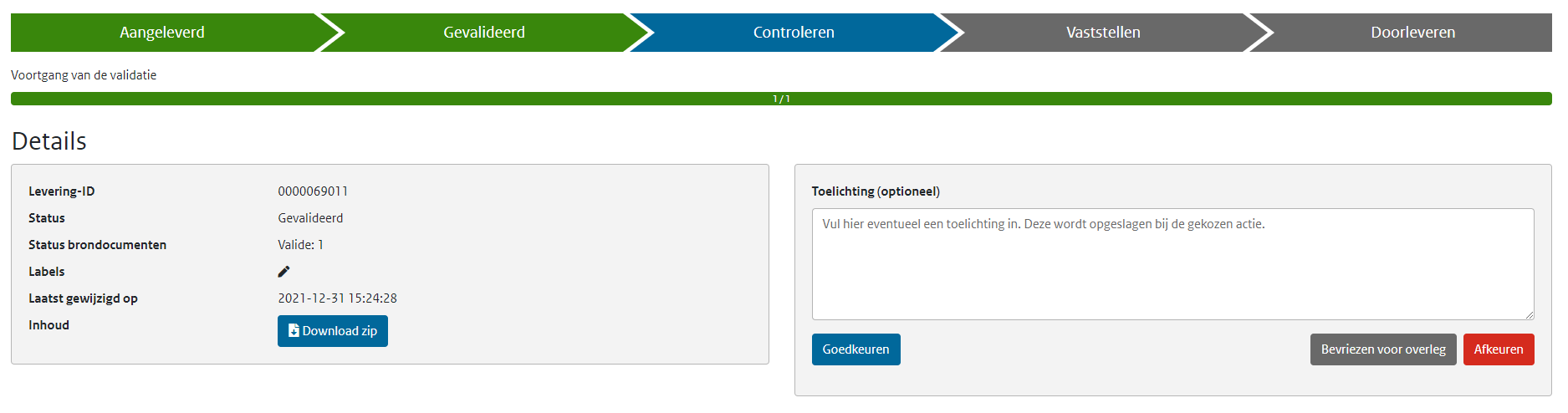 Als Interne Controleur kun je een levering bekijken en goed- of afkeuren.