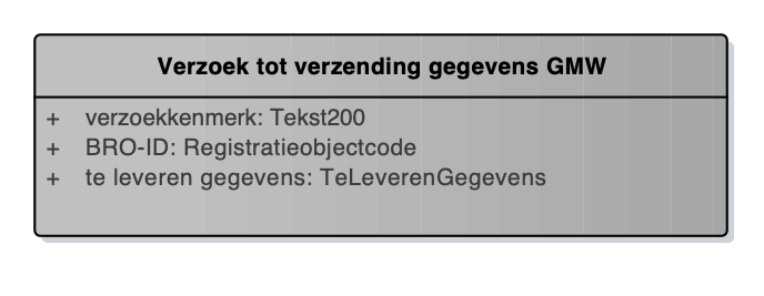 Het verzoek tot verzending van de gegevens van een grondwatermonitoringput bestaat uit drie gegevens. Het verzoekkenmerk, het BRO-ID van de grondwatermonitoringput dat de data-afnemer wil krijgen en een aanduiding van de te leveren gegevens. Met het laatste geeft de data-afnemer aan of hij de actuele gegevens of de historische gegevens van een grondwatermonitoringput wil ontvangen.