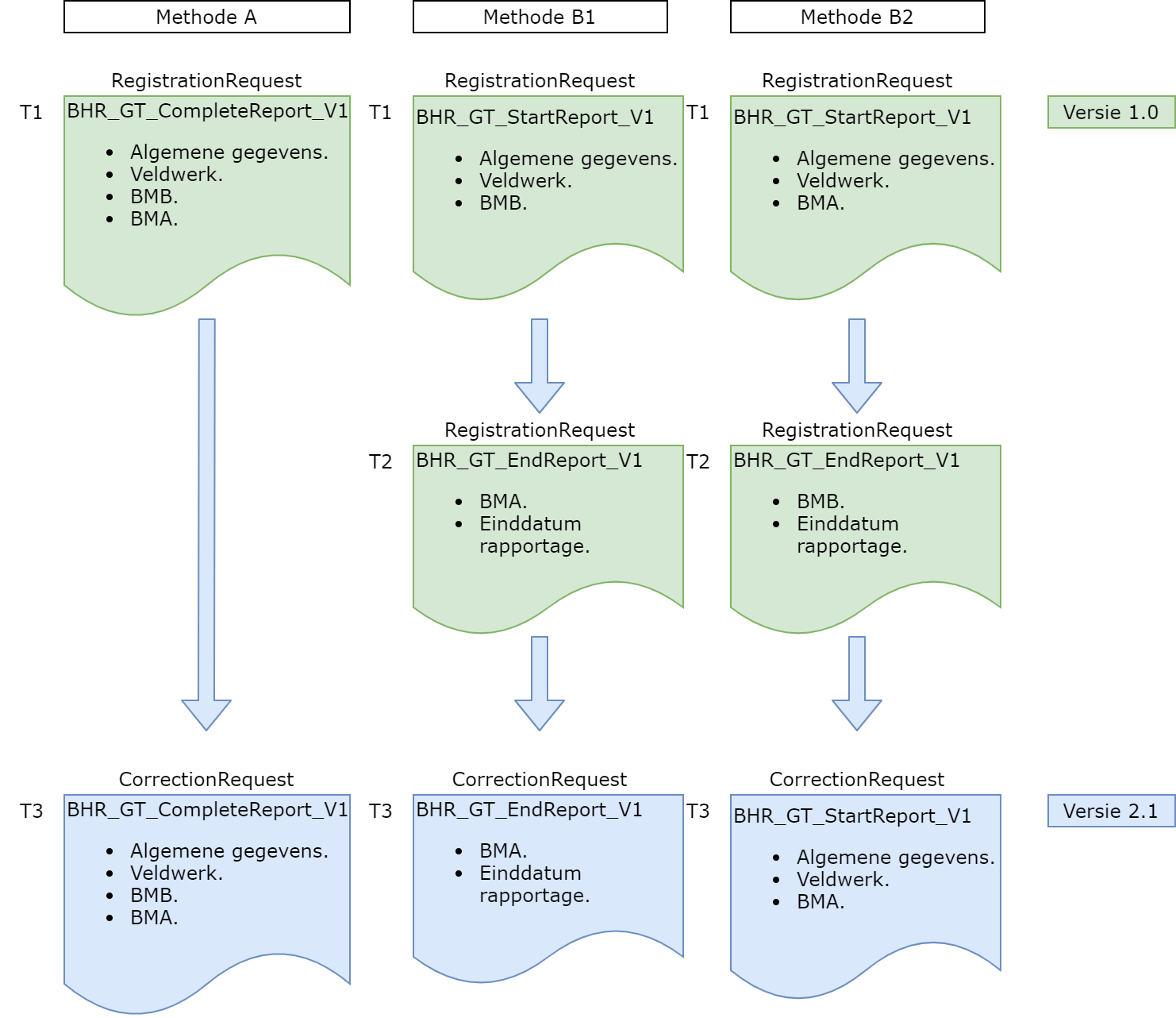 Paragraaf 2.1.1 beschrijft in detail de opbouw van een registrationRequest . Paragraaf 2.1.2 beschrijft op dezelfde manier een correctionRequest .