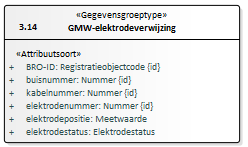 1 | Voor de geo-ohmkabelmeetmethode worden gegevens gebruikt uit de grondwatermonitoringput (GMW). In de gegevenscatalogus en domeinmodel wordt de suggestie gewekt dat deze GMW-gegevens ook geregistreerd worden in FRD. Deze suggestie is niet correct. GMW-gegevens worden alleen in GMW geregistreerd. In FRD worden alleen naar gegevens uit GMW verwezen. Dit moet in het model en de catalogus explicieter gemaakt worden. | GMW-elektrodeverwijzing: BRO-ID, buisnummer, kabelnummer, elektrodenummer, elektrodepositie en elektrodestatus | GMW-elektrodeverwijzing: BRO-ID en buisnummer worden uit deze entiteit verwijderd want staan al in GMW-monitoringbuis |